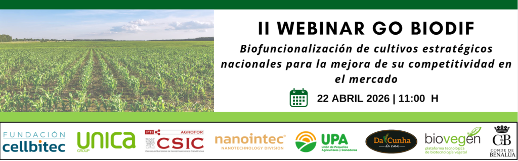 *Nota: al cumplimentar este formulario consiente que sus datos personales sean tratados por BIOVEGEN-Plataforma Tecnológica de Biotecnología Vegetal para gestionar su participación en «II Webinar GO BIODIF: biofuncionalización de cultivos estratégicos nacionales para la mejora de su competitividad en el mercado» y recibir información relativa al proyecto. Si desea modificar o dar de baja sus datos personales, puede hacerlo enviando un email a la dirección de correo electrónico dlapuente@invegen.org